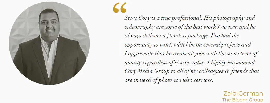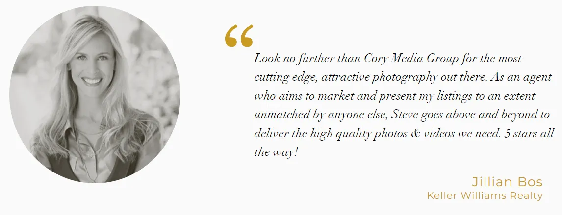 With more than 20 years of business experience, our team combines the psychology of marketing with the skill of an experienced artist to showcase and market your client's home to sell quickly, commanding top dollar. You can always count on Cory Media Group to deliver magazine quality images, smooth, cinematic video footage, and breathtaking aerial imagery.